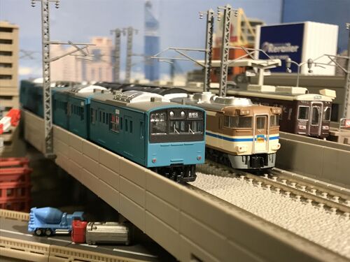 国鉄 201系 スカイブルーの Bトレインショーティーのご紹介です。戸袋窓がある登場時のものとなります。スカイブルーの201系は関東では京葉線、関西では京阪神緩行線で活躍しました。JR東では引退済みですが、JR西日本ではスカイブルーではないものの、大和…