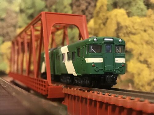 JR西日本 キハ58形 高山線色 のBトレインショーティーのご紹介です。JR化後の高山本線の富山側を走っていたキハ58形がまとっていた塗色です。飛騨の山々の緑と、雪解け水をイメージしたストライプからなるデザインです。